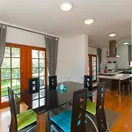 Sie können die Aussicht auf den Garten genießen. Die Badezimmer verfügen über eine Badewanne und eine Dusche.